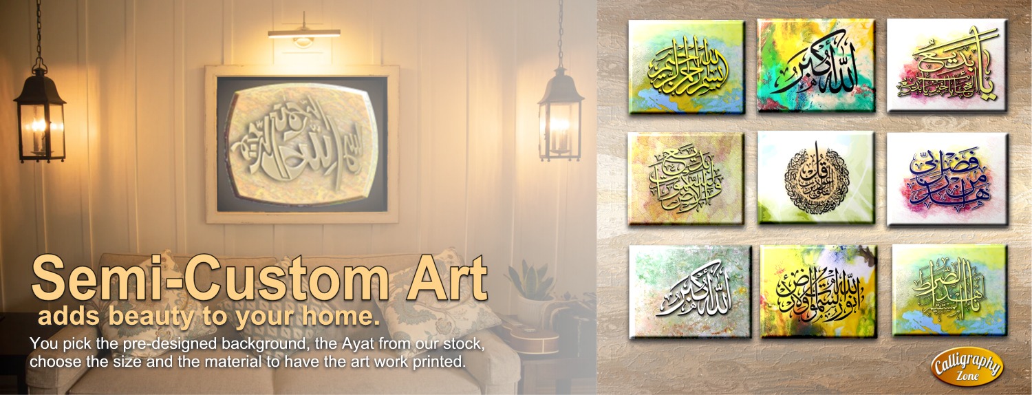 | Select Ayaat | 2ND KALMA, AL-HUMDO-LILAH-E-RABBIL-ALAMEEN, ALLAH – MOHAMMAD, ALLAH-O-AKBAR, ALLAH-O-AKBAR-4, ALLAHO NOOR-US-SAMAWAAT-E-WAL ARDH, ALLAHO NOORUS-SAMAWAT-E-WAL ARDH ROUNDISH, ALLAMAL INSAANA MAA LUM YAALAM, ALLAMAL INSAANA MAA LUM YAALAM Square, BADEE USS SAMAWAATAE WAL ARDH, BISMILLA – SQUARE, BISMILLAH, BISMILLAH 2, FATAWAKKAL ALAL LAH, FIRST KALMA – RECTANGLED, HAAZA MIN FAZLE RABBI, HABONAL-LAAHE WA-NEMAL VAKEEL – custom, INNAL LAHA MAAS SAABEREEN, INNAL LAHA MAAS SAABEREEN2, INNAL LAHA YARZUQO MAN-YASHAA0 BIGHAYRIN HISAAB 1, MASHA-ALLAH LA QUWATTA ILLA BILLAH, MOHAMMAD RASOOL ALLAH-2, MOHAMMAD RASOOL-AALAH, NOON WALQALAM-E-WAMA YASTORUN, PEHLA KALMA, PEHLA KALMA- CUSTOM, SUBHAN-ALLAH, Surah Al-Kafirun., Surah Falaq., SURAH IKHLAS – ROUND, Surah Ikhlas., Surah Nas., WALLAHO KHAIR-RA ZEQEEN, WAMA BIKUM MIN NEMATA FAMINALLAH, WAMA TAWFEIE ILLA BILLAH |